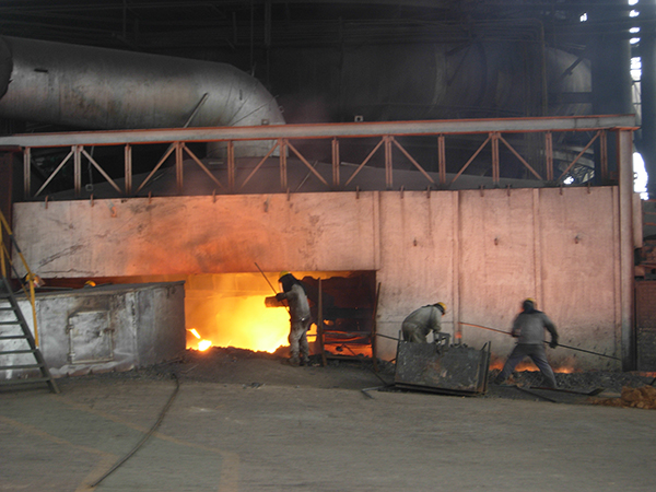 出鐵是最為壯觀的時(shí)候,如果順利,每爐鐵水要流60至70分鐘。爐口不暢通的時(shí)候,穿著阻燃服的爐前工戴著防護(hù)面罩,站立在1470多度的爐前疏通。出鐵后,也是爐前工最累的時(shí)候,他們要做許多的準(zhǔn)備和后續(xù)工作,如報(bào)罐、填寫報(bào)表、清理鐵水的殘?jiān)?、殘鐵、備料、倒渣、驗(yàn)罐、現(xiàn)場(chǎng)定置等。大壕幾百度的高溫,暗藏著的險(xiǎn)情不言而喻,如果稍一走神,便會(huì)有燒、燙傷的危險(xiǎn)。一天下來,爐前工的衣服濕透了,臉上掛滿了黑灰,身上也變得鐵一樣黑。